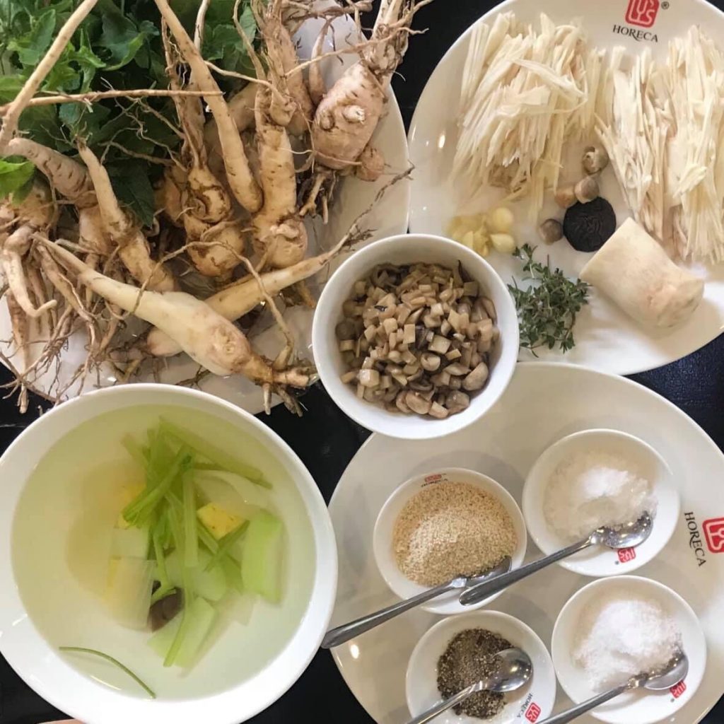 – Gói thuốc bắc mua về rửa cho hết bụi rồi ngâm nước lả hoặc nước dừa 10 phút cho thuốc bắc nở ra. Sau đó cho cả nước và cái đem ninh riu lửa tầm 15phút. Cảm thấy nước và cái săm sắp và nhừ mềm( mục đích nấu riêu cho ra thuốc Bắc )